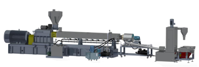 該系統(tǒng)由模頭,水下切粒機,循環(huán)水系統(tǒng),排水系統(tǒng)。